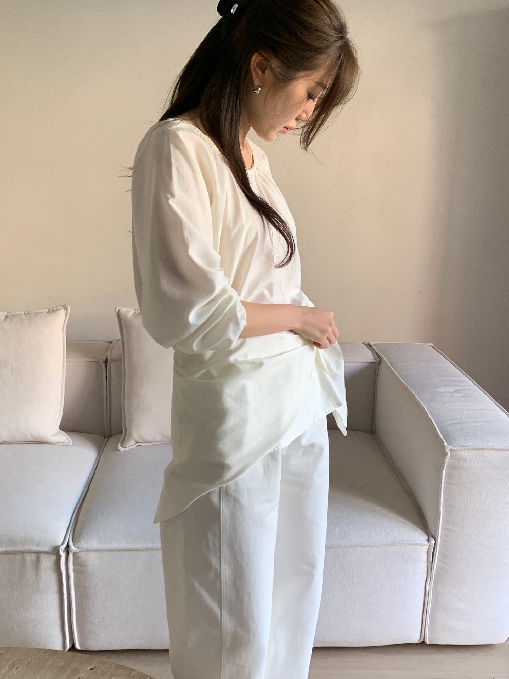 A silky blouse that drapes effortlessly with every movement.
