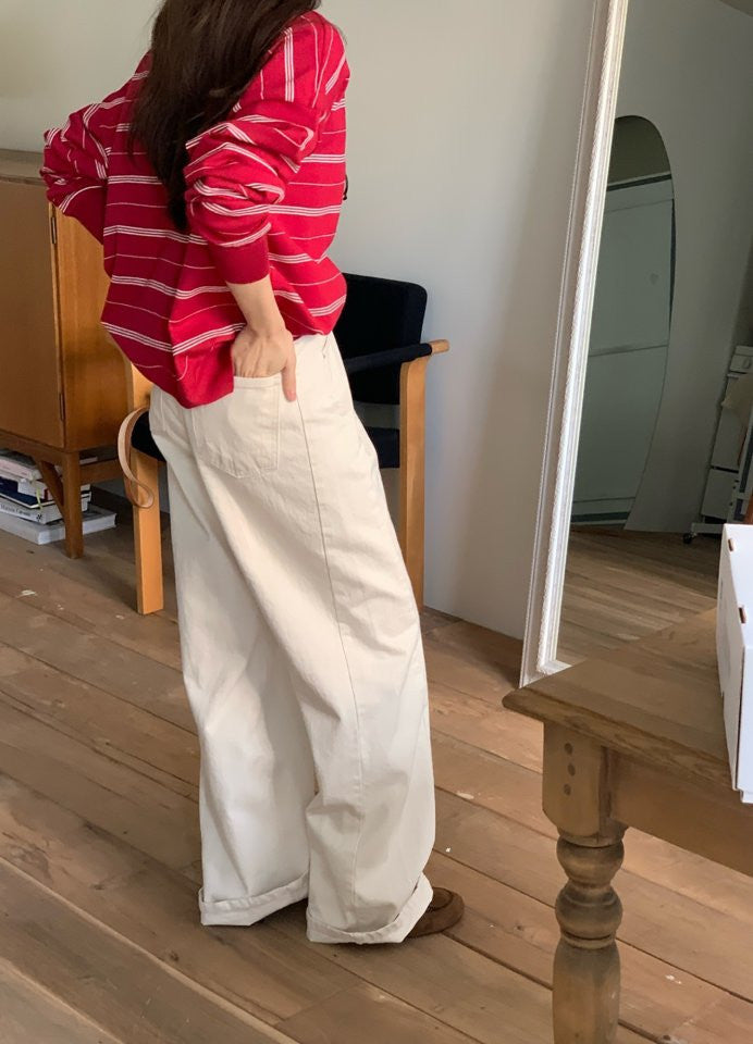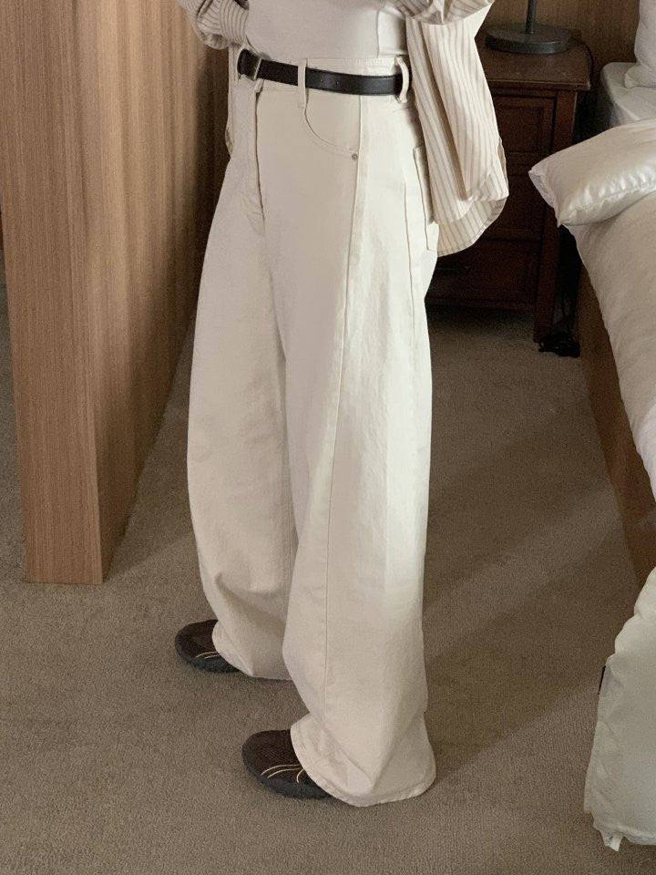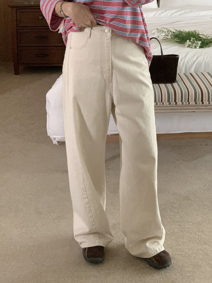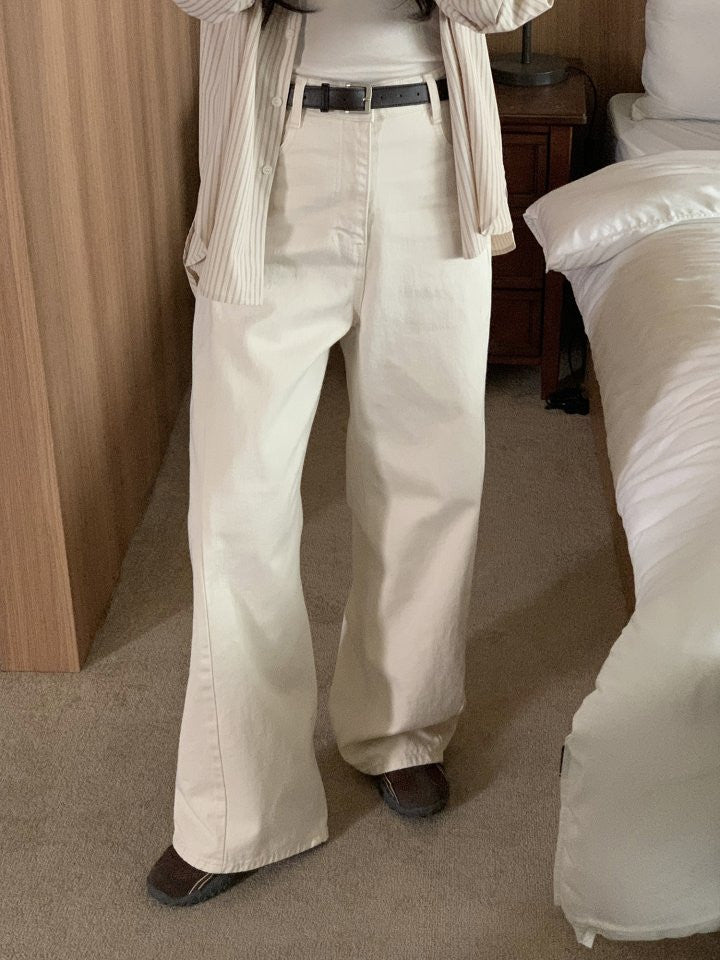 화이트 데님 특유의 부담 없이, 내추럴하게 멋스러운 팬츠.