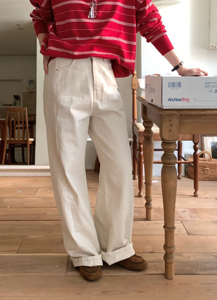 크림 컬러의 담백한 매력으로 어떤 상의와도 잘 어울리고,