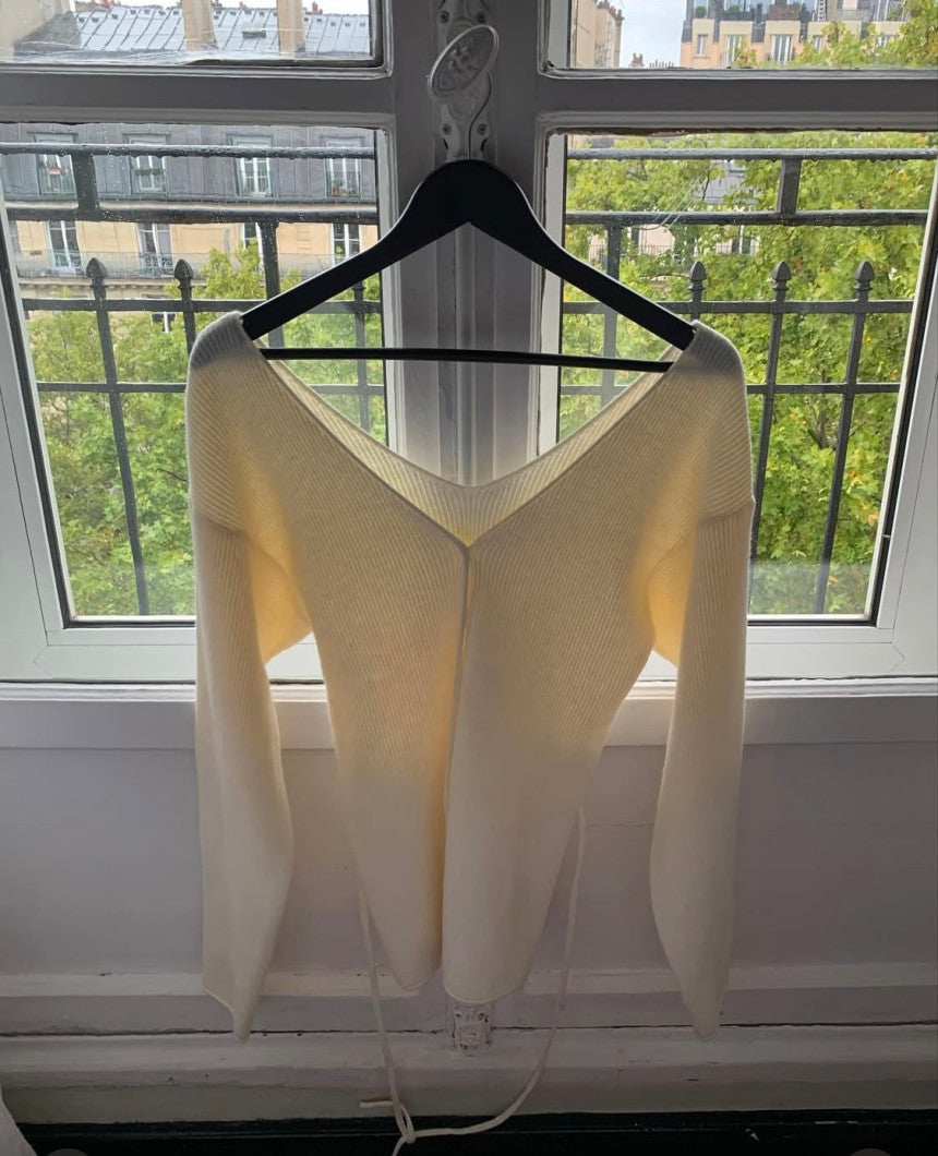 The flattering V-neck design on both sides creates a refined yet relaxed mood, making it easy to dress up or down.