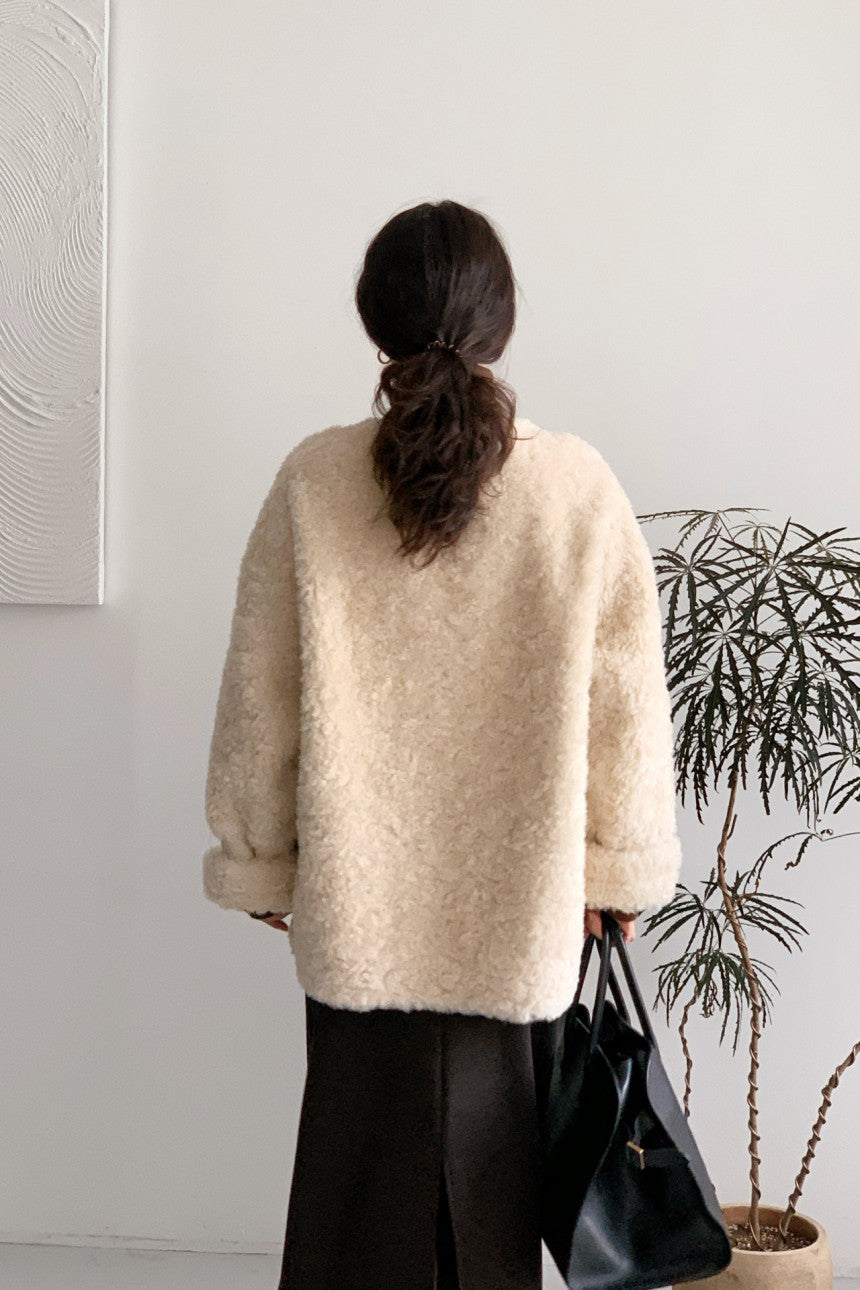 This soft and fluffy 100% wool fur jacket is a truly beautiful statement piece.